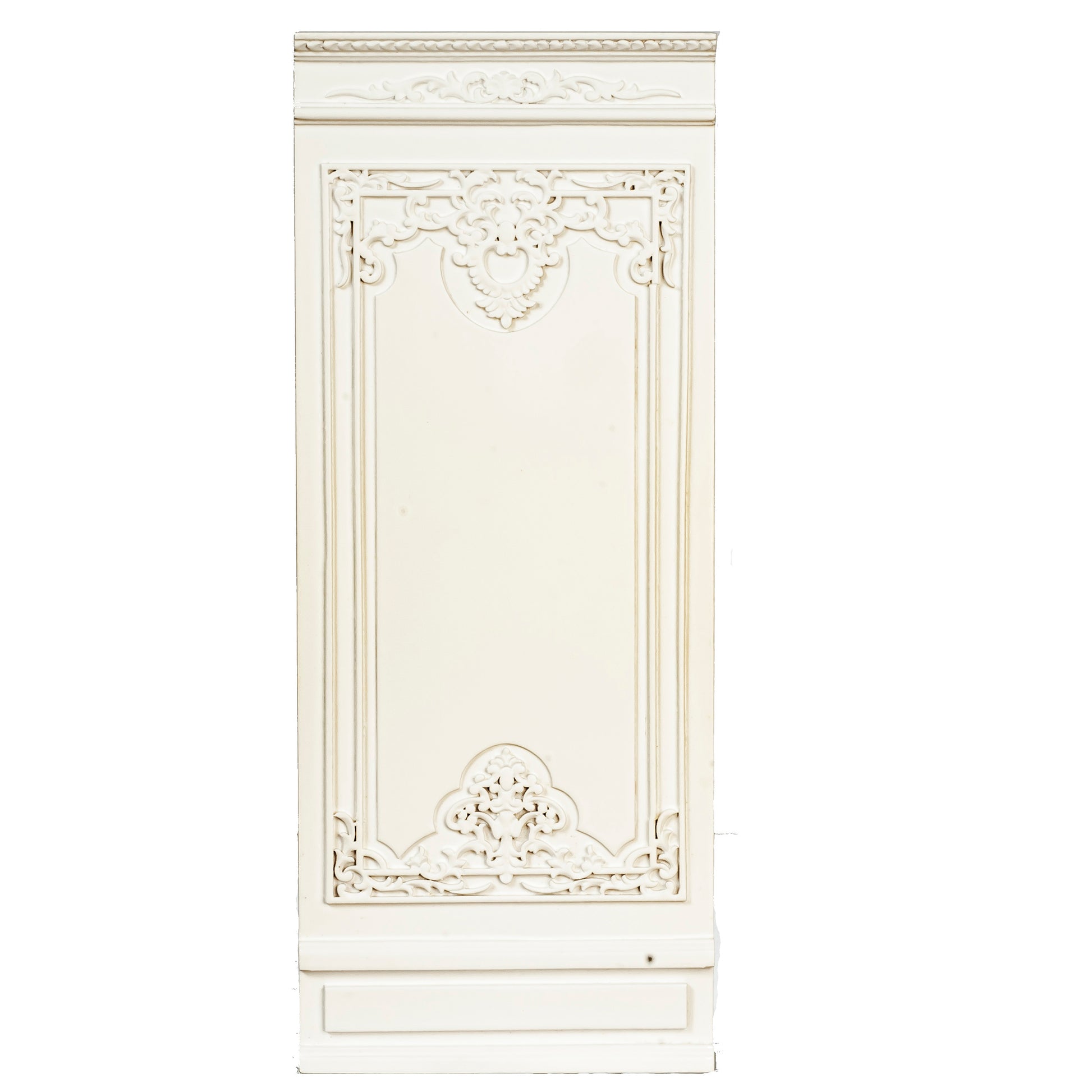 This finely crafted 1:12 scale Victorian wall panel adds classic elegance to any dollhouse interior. Its detailed walnut or white finish provides warmth and sophistication, making it a striking decorative element for any room.