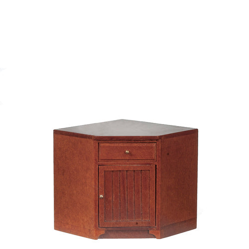 This compact 1:12 scale miniature bottom corner cabinet is perfect for adding functional storage to any dollhouse room. Available in walnut or white finishes, it complements a variety of interior styles.