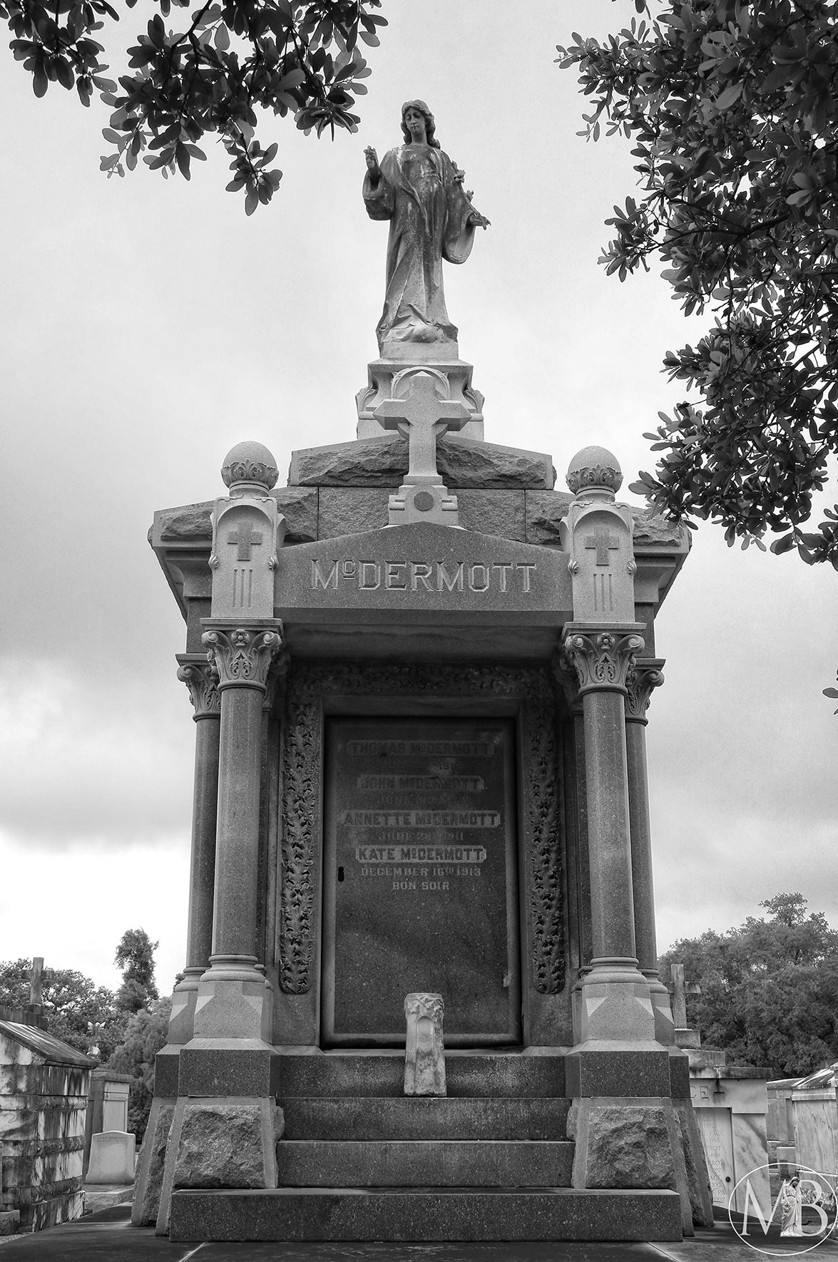 Printed on museum-grade archival paper, this photograph is part of an exclusive series and forthcoming book devoted to the quiet splendor and intricate beauty of the Metairie cemeteries in New Orleans, Louisiana.